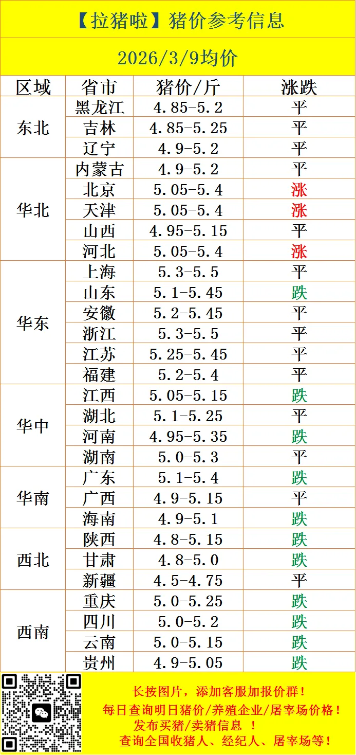 【拉猪啦】3.9-猪价行情与买卖猪信息!(有涨有跌!)