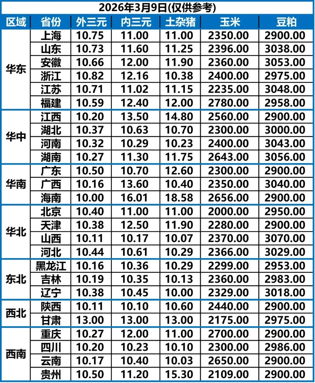 3月9日 | 正业生物猪价快报!