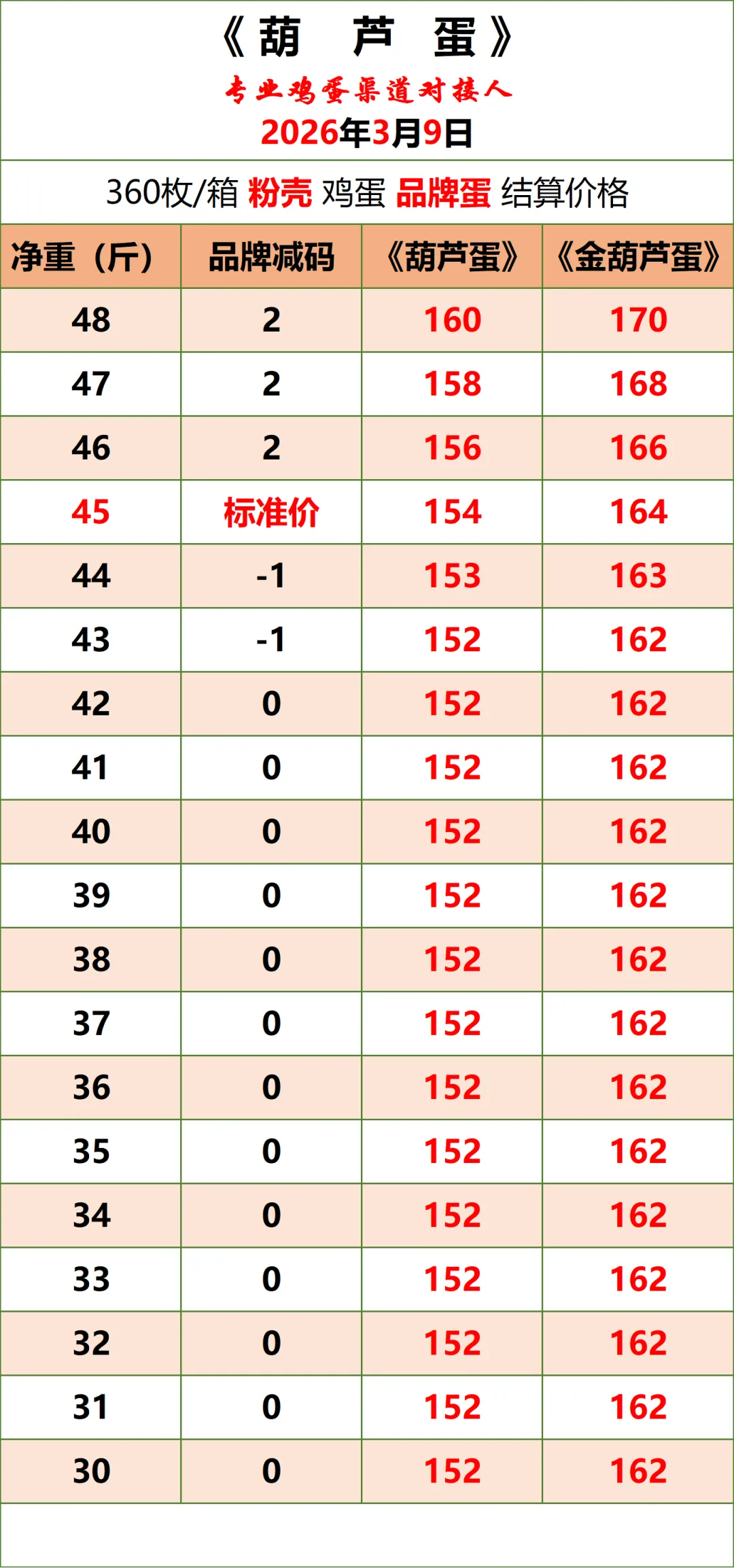 1、以上价格为《葫芦蛋》平台公示的鸡蛋含包装成交结算价(上车价),仅供与本平台渠道对接伙伴参考使用,不与其他任何报价作比较。