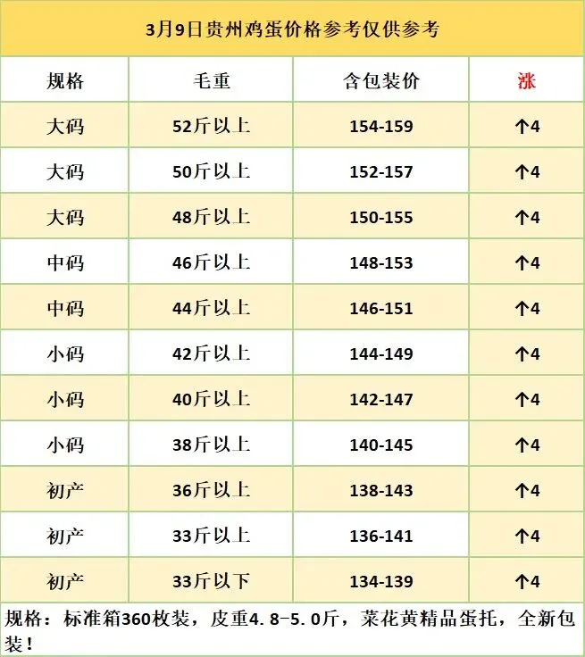 3月9日贵州鸡蛋价格参考