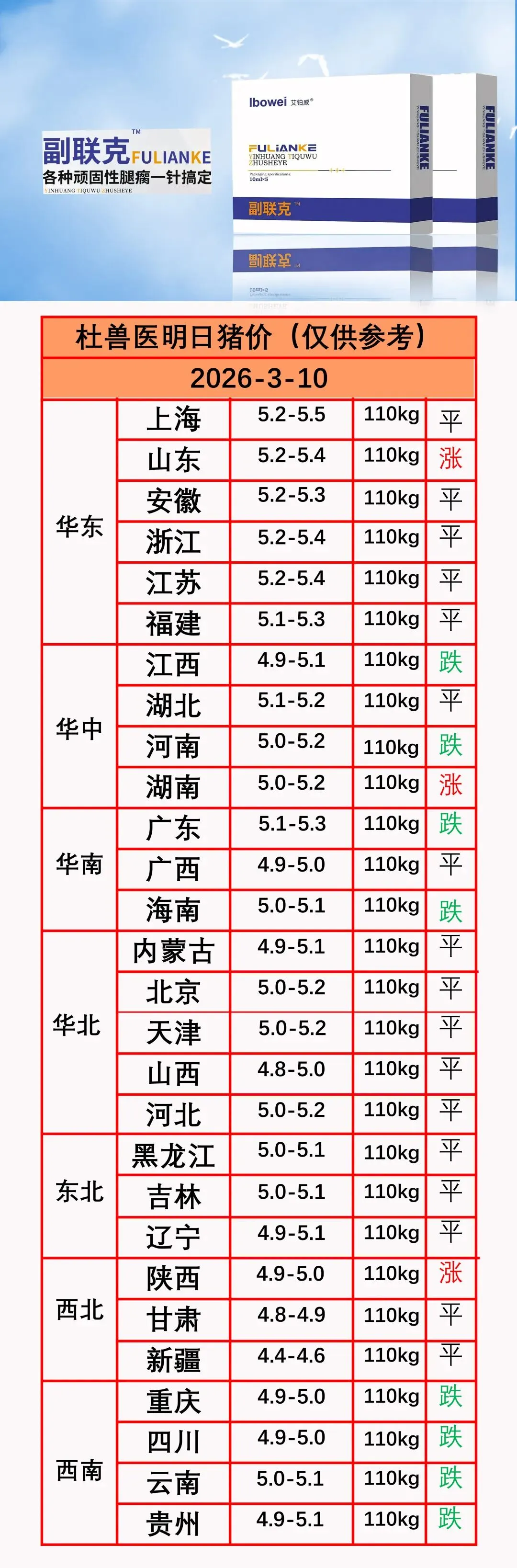 北方大部企稳:东北、华北、西北除陕西上涨外,其余省份全部持平,显示北方市场在连续下跌后进入僵持阶段,养殖户抗价情绪与屠企压价博弈加剧。