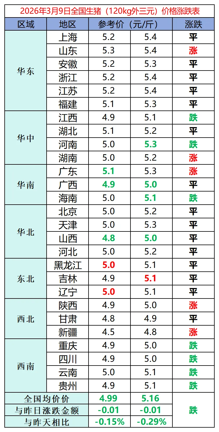 今日猪价 | 2026.3.9 4年新低阴影未散:今日生猪均价10.30元/公斤,行业寒冬持续