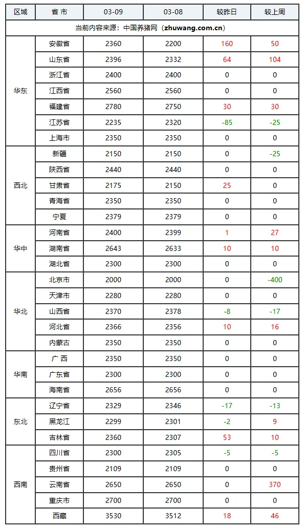03月09日猪价:弱势调整!市场全面承压,猪市何时回暖?