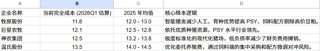 如图,A股四大生猪养殖企业完全成本最新预估平均在12.5元,最低的牧原股份11.8元,最高的温氏股份13.5元。上市企业都开始亏损了,其他中小养殖企业该是出清的有多惨烈。