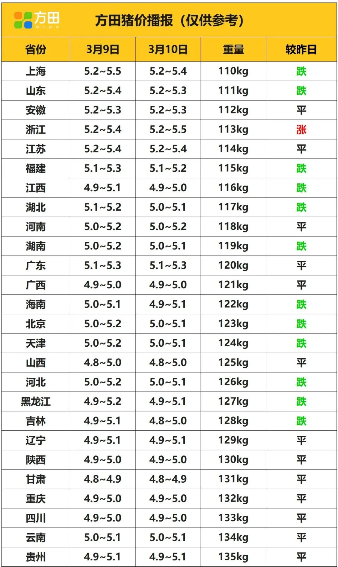 猪价丨3月10日 明日猪价早知道 养羊网 2026-03-09 猪价丨3月10日 明日猪价早知道 养羊网 2026-03-09 上一篇:猪价大预测】3月4日~3月7日!全国猪价大预测! 下一篇:猪价有变! 2026年3月10日全国各地生猪价格信息! 您可能还会对下面的文章感兴趣111: 相关文章 2025年4月13日全国各地生猪价格信息 近期价格更新!!! 澄迈县巴马香猪价格表 【养猪行情】2026.02.05-猪价行情