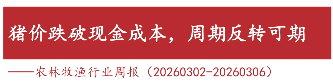 证券研究报告:《猪价跌破现金成本,周期反转可期——农林牧渔行业周报(20260302-20260306)》