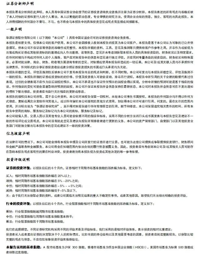 本公众号仅是转发华源证券已发布报告的部分观点,所载盈利预测、目标价格、评级、估值等观点的给予是基于一系列的假设和前提条件,订阅者只有在了解相关报告中的全部信息基础上,才可能对相关观点形成比较全面的认识。如欲了解完整观点,应参见完整报告。