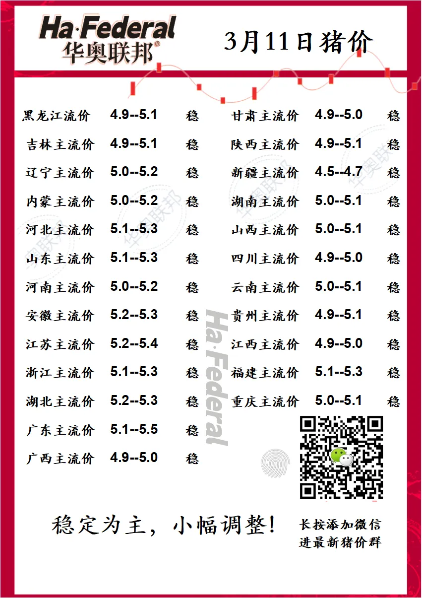 3月10最新猪价 5元保卫战 养羊网 2026-03-11 3月10最新猪价 5元保卫战进最新报价群 加微信 v联系电话:137 ?0084 ?5054 养羊网 2026-03-11 上一篇:3月11日最新猪价!!!一落千丈,猪价进入4元区!! 下一篇:2026.3.11——明日猪价预测 您可能还会对下面的文章感兴趣111: 相关文章 多地猪价跌进4元区!官方分析师发声:别慌,4、5月或将回升 2025年4月13日全国各地生猪价格信息 2025年4月13日全国各地生猪价格信息 近期价格更新!!!