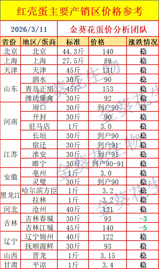 【蛋价预报】3月11日最新鸡蛋价格(粉蛋补涨,红蛋稳定)