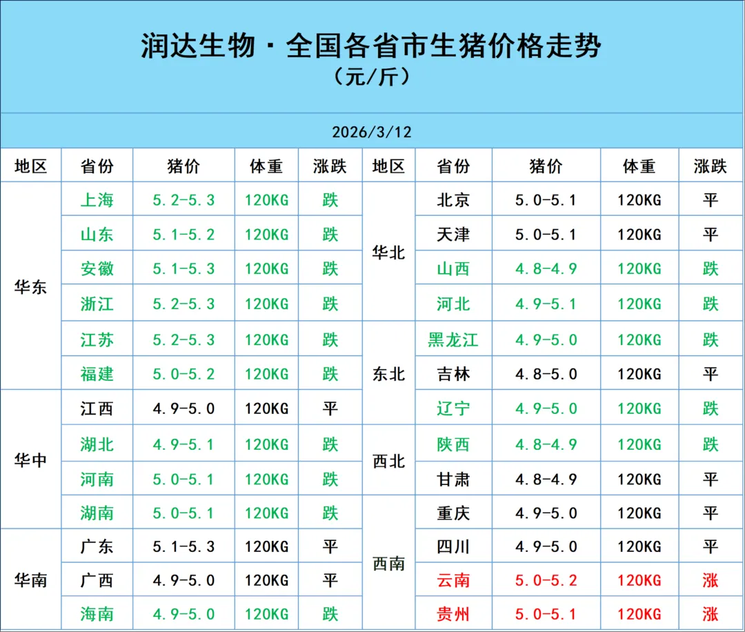 2026年3月12日明日猪价行情:下跌为主! 养羊网 2026-03-11 2026年3月12日明日猪价行情:下跌为主!免责申明:本微信服务平台资料来源于网络收集,以供给大家学习、交流为目的,请诸位在阅读后,尽快删除,尊重资料原作者,支持正版。若所列资源侵犯了您的权益请直接留言,立刻删除! 养羊网 2026-03-11 上一篇:2026年3月12日明日猪价行情:下跌为主! 下一篇:全国各地2026.3.12今日最新猪价(速看!) 您可能还会对下面的文章感兴趣111: 相关文章 ?你吃过乌鸡蛋么? 3月1日猪价参考 合作共赢 2025年4月13日全国各地生猪价格信息