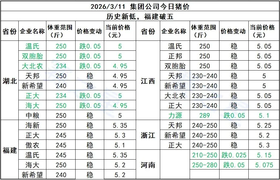2026.3.12 明日猪价,福建破五:一个标志性信号背后的行业冷暖