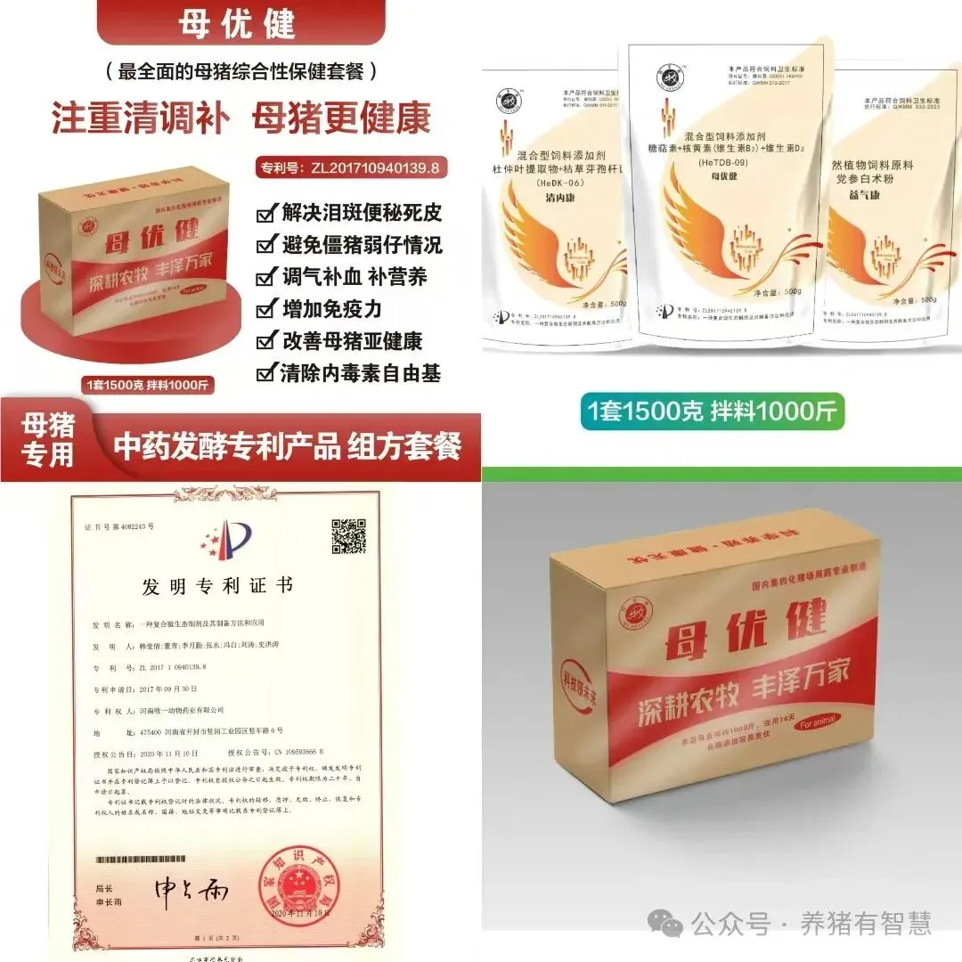 母优健是一款三专利组方产品,融合了三项专利技术,是母猪保健领域的一流产品。其独特组方经过了严格的科学验证和实践检验,并获得国家发明专利。凭借先进的专利配方,能够全面提升母猪的免疫力,使其坚强抵御各种疾病威胁。有效改善母猪生殖系统健康,增加受孕率和产仔数,保障繁殖高效顺利。