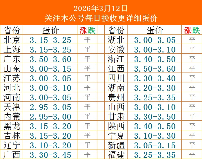 蛋价早报,3月12日鸡蛋价格行情平稳