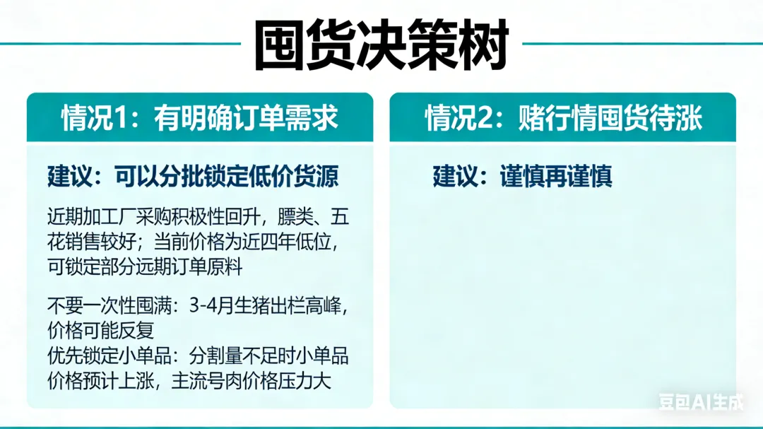 战略性备货:基于订单需求,锁定未来1-2个月的原料,控制成本波动。可以操作。