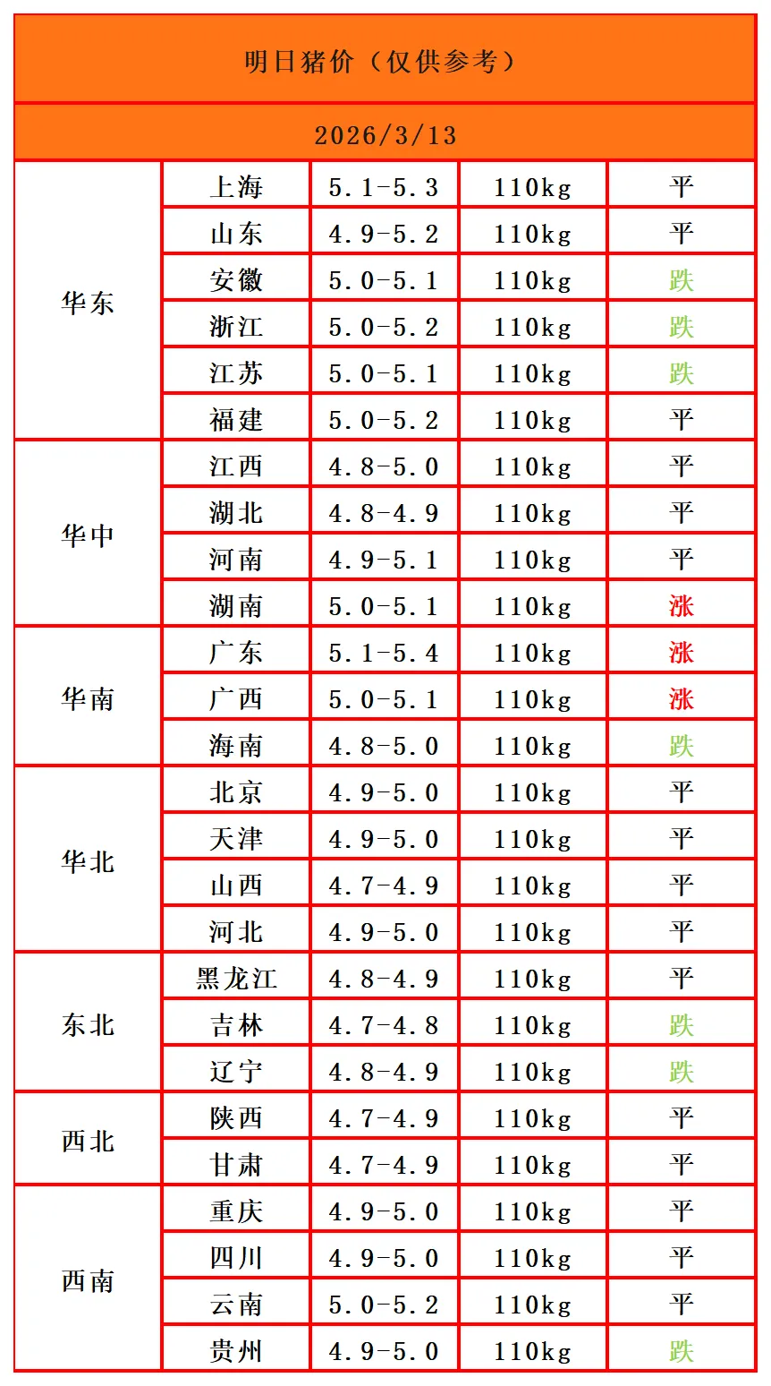 2、从市场角度来看,东北地区屠宰企业生猪采购难度表现一般,养殖户出栏积极性偏弱,集团猪场猪价呈现跌涨调整,屠宰企业停计划现象表现一般;中部、东部地区屠宰企业采购难度表现一般偏弱,当地养殖户出栏积极性表现一般,集团猪场销售速度表现一般,屠宰企业停计划现象表现一般偏好;南方地区屠宰企业采购难度表现一般,屠宰企业停计划现象表现一般,西南、华南集团猪场接货完成度表现一般偏好,集团场猪价呈现跌涨调整态势。市场看稳、看跌、看涨情绪并存,预计后日猪价窄幅调整,重点关注养殖场户上市节奏变化。(来源网络)