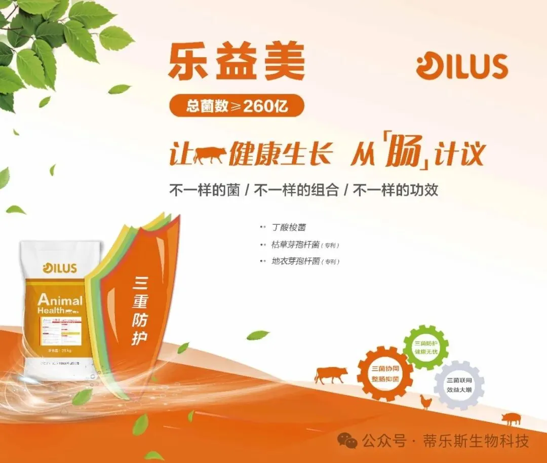 菌群核弹矩阵--乐益美 乐益美:三菌复合专利配方,丁酸酸菌+地衣芽孢杆菌+枯草芽孢杆菌。抑制有害菌,实现肠道菌群平衡,构建免疫屏障,促进动物生长。 ●三菌协同,整肠抑菌; ●三菌防护,健康无忧; ●三菌联用,效益大增。