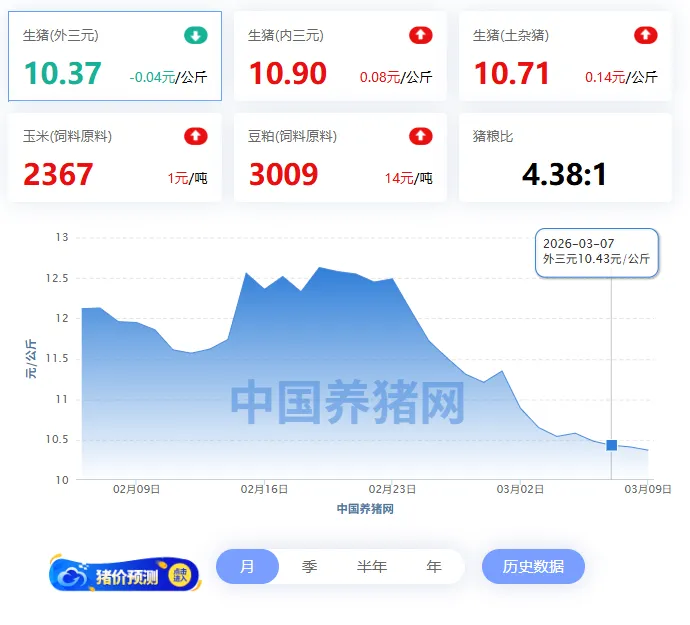 当前生猪市场持续走弱,标猪均价触底10.37元/公斤,同比降近30%,主因供强需弱。然而,市场上另外的现象引发广泛关注,多地7公斤仔猪价格大幅跳水,单周跌幅达40-60元/头。