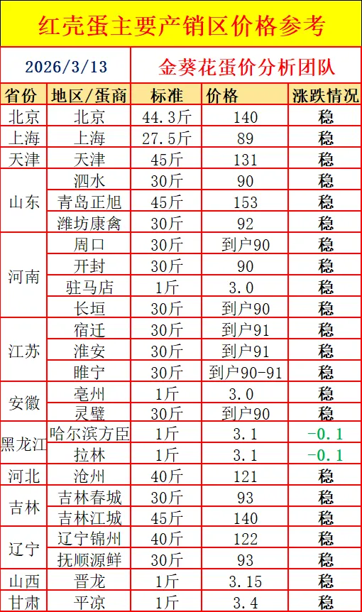 【蛋价预报】3月13日最新鸡蛋价格(稳中有涨,蛋价跌不动)