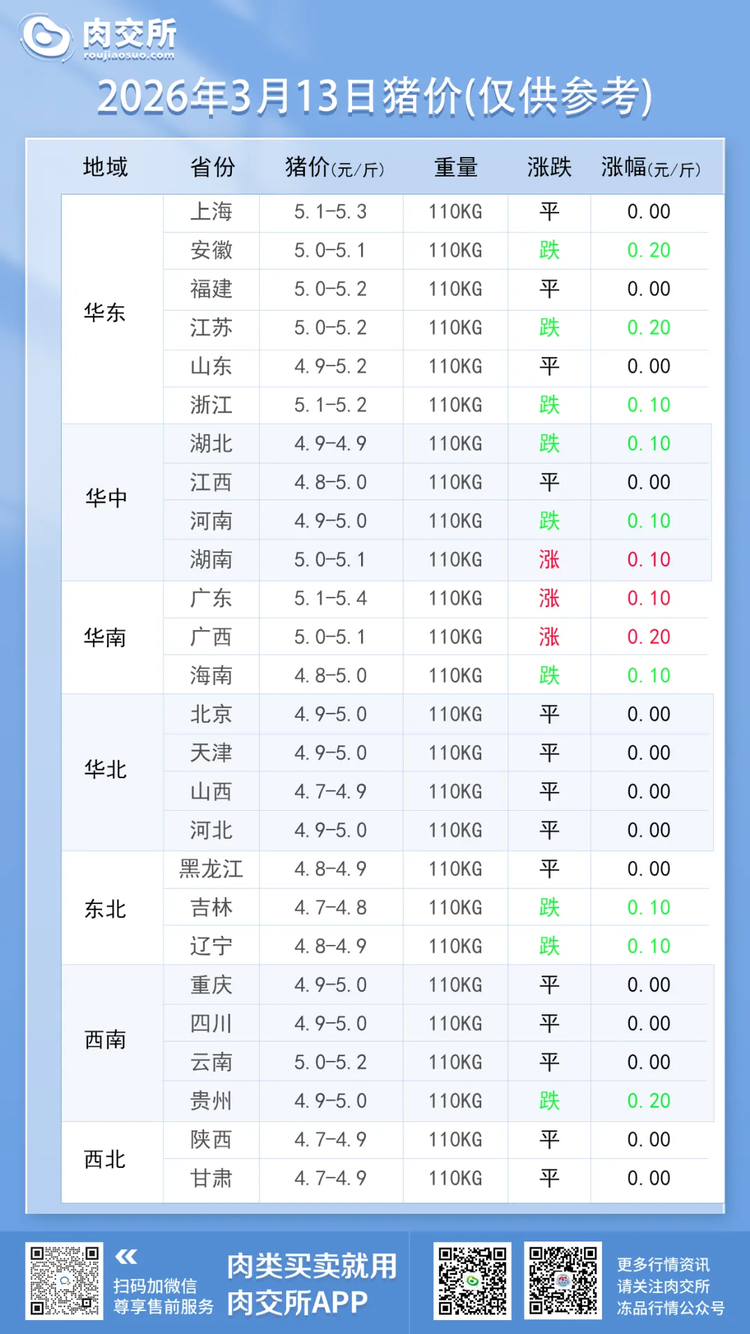 浙江、湖北、河南、海南、吉林、辽宁跌 0.1 元 / 斤; - 全面企稳