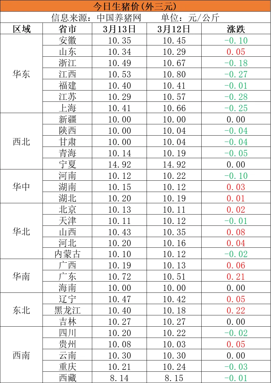 【3月13日猪价】北稳南强!市场预计近期仍将维持低位震荡格局