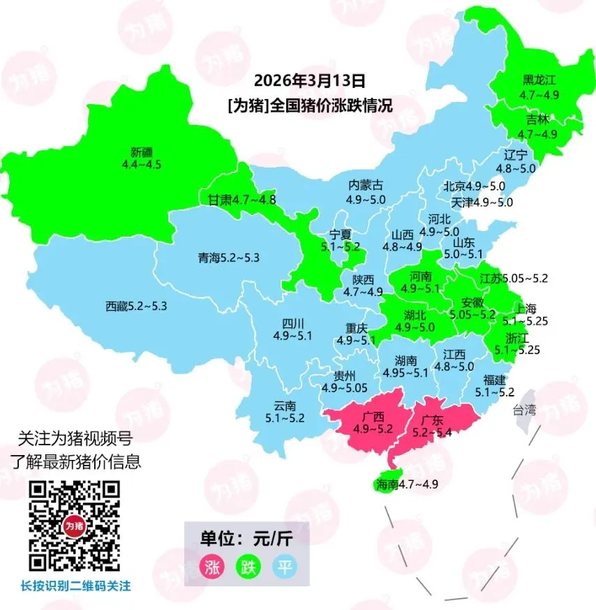 3月13日猪价 | 全国均价来到5元,广东大场上涨2毛!