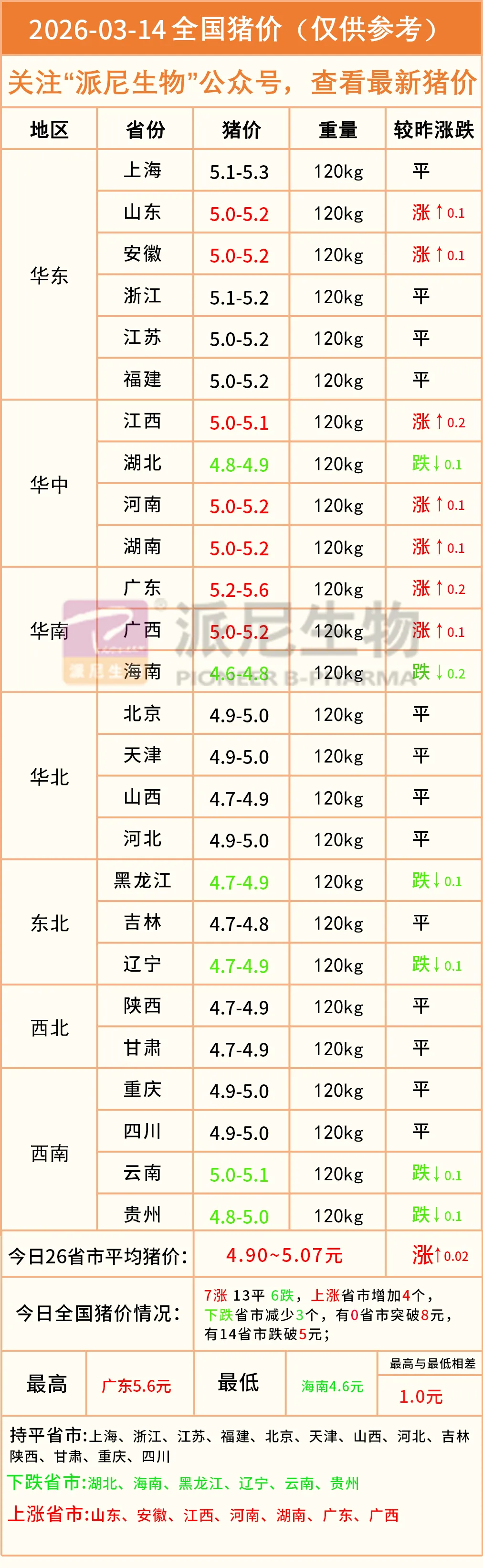 明日猪价——2026年03月14日全国生猪价格! 养羊网 2026-03-13 明日猪价——2026年03月14日全国生猪价格! 养羊网 2026-03-13 上一篇:猪价低迷期,抓仔猪还是搞二次育肥?养殖户必看避坑指南 下一篇:2026.3.14明日最新猪价信息! 您可能还会对下面的文章感兴趣111: 相关文章 2026年3月11日东莞大岭山鸡蛋价格早报 在德国买鸡蛋的奇妙体验? 福建省2026.3.11猪价 ——福建江山益民 近期价格更新!!!