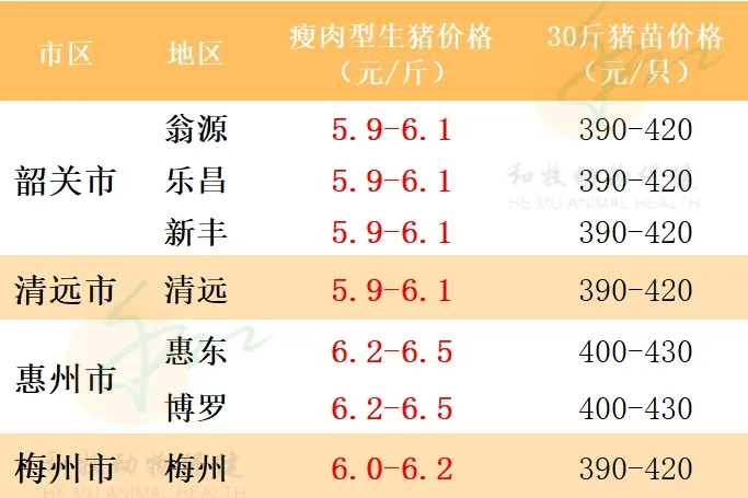 注意:以上价格仅供参考,不同地区不同猪场价格均有一定波动!