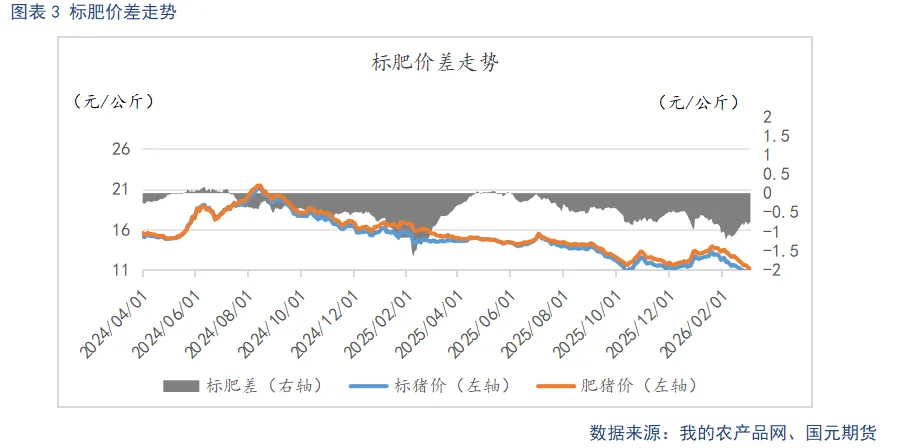 元宵节后,市场购销清淡,养殖端出栏节奏偏快,供应充足,供大于求格局下,现货延续偏弱运行。主力2605合约在后续供需矛盾将有所缓解的预期下,走势与现货出现分化,呈现低位震荡,期现升水逐步走扩。