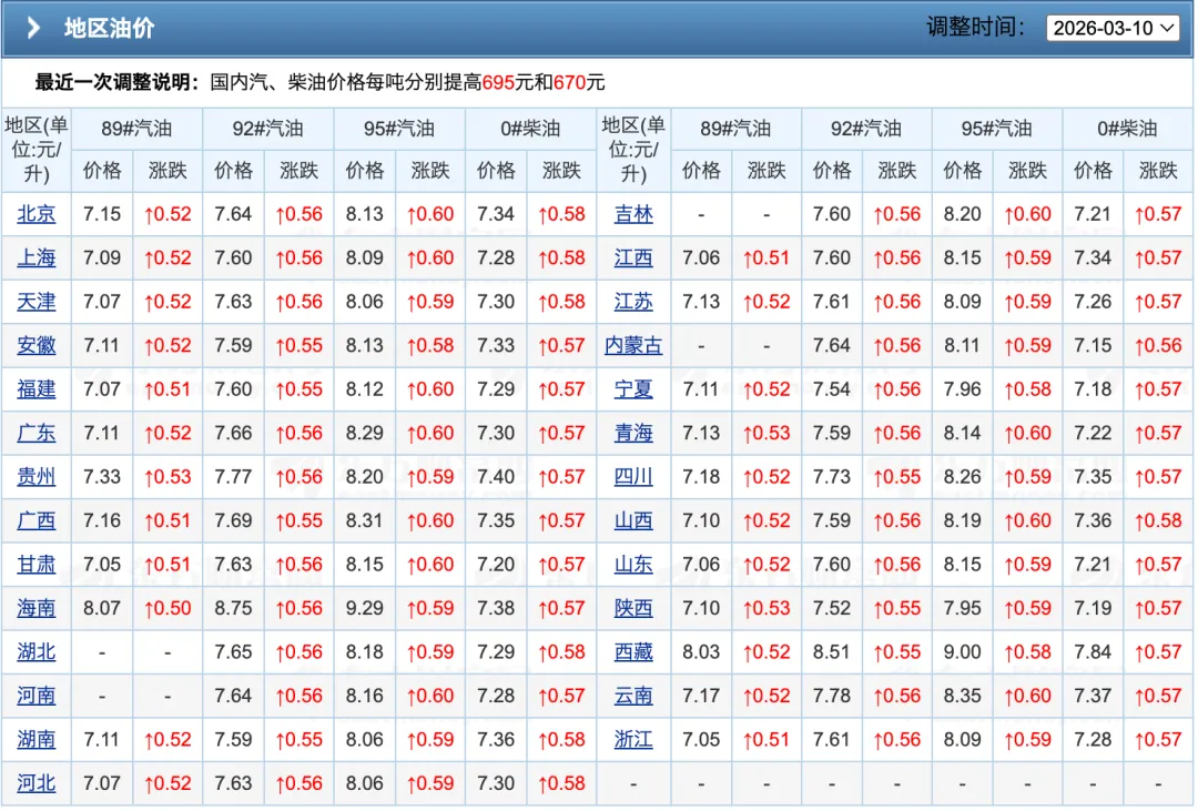 油价暴跌180°大反转?26年油价“五连涨”定了!下次调价3月23日:92、95号汽油报价!