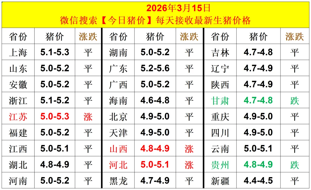 今日猪价|明日猪价2026.3.15(仅作参考)