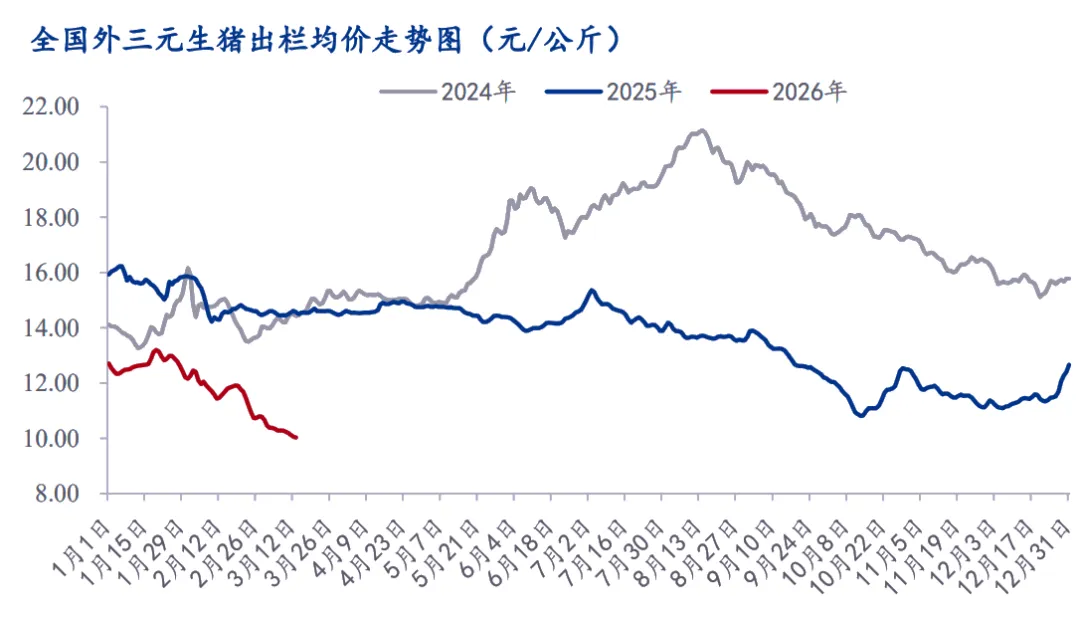 本周生猪价格呈现持续走弱趋势,周度均价重心下移,供需核心逻辑为“生猪供大于求,需求支撑有限”。