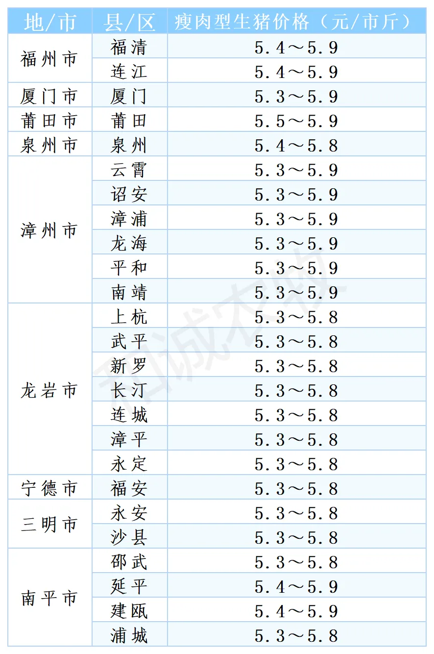 【猪价】2026.03.15福建各地区每日最新猪价