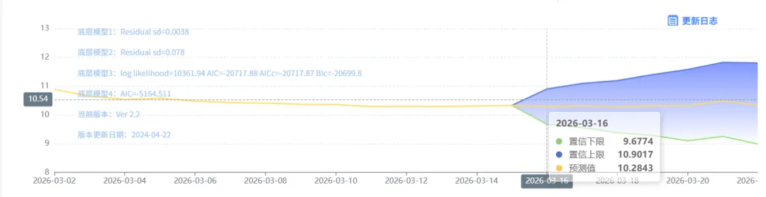 玄田算法是由项目课题组团队原创的非经典逻辑数值聚合理论和不确定性预测方法,构建了基于一致模算子的生猪价格预测模型。该模型采用的聚合函数及一致模相关理论与方法已获得多项国家自然科学基金和省级自然科学资金资助,并获得多项省级自然科学奖奖项。03月16日预测猪价为10.2843,置信区间在9.6774--10.9017之间。03月17日预测猪价为10.3164;03月18日预测猪价为10.2710。