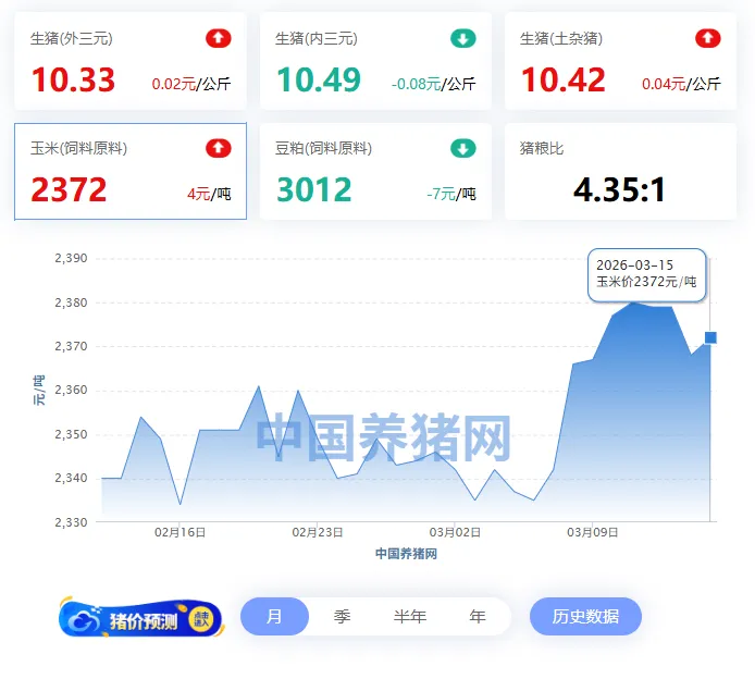 2026年03月15日-中国养猪网 全国玉米价格走势图及涨跌表