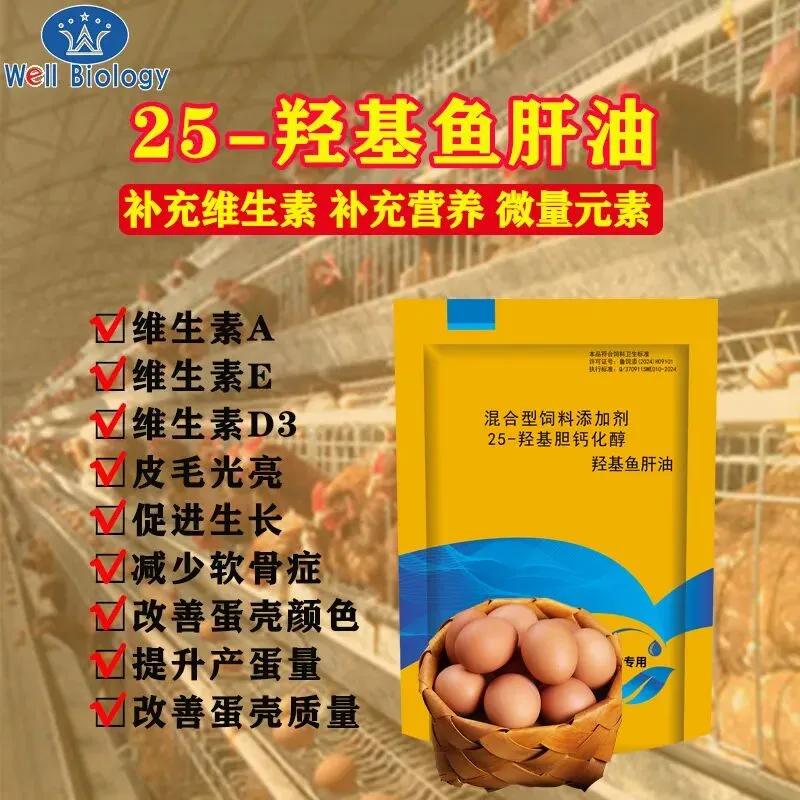 【25羟基维生素鱼肝油d3】鱼肝油主要是促进钙磷吸收转化,促进骨骼发育,保护和修复呼吸道和肠道粘膜,改善蛋壳质量