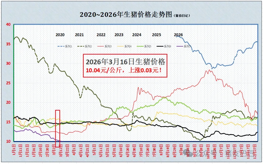 2026.3.16-明天猪价生猪市场面临失衡的局面,猪价下行压力不减!但是,随着标猪报价触底10元/公斤,市场出栏情绪略有分歧,北方部分散户猪场稳价惜售现象有所增加,但是,部分集团猪企仍有增量出栏现象,且,需求跟进不佳!虽然,二育以及屠宰场有抄底意愿,但是,受饲料成本上升,市场对于猪价前景仍缺乏信心,二育或难以集中入场,猪价或维持低位震荡的局面! 从最新数据分析,受屠企调价,预计,3月16日,标猪报价在10.04元/公斤,后市关注生猪购销节奏的变化,对此,大家是如何看待的呢?