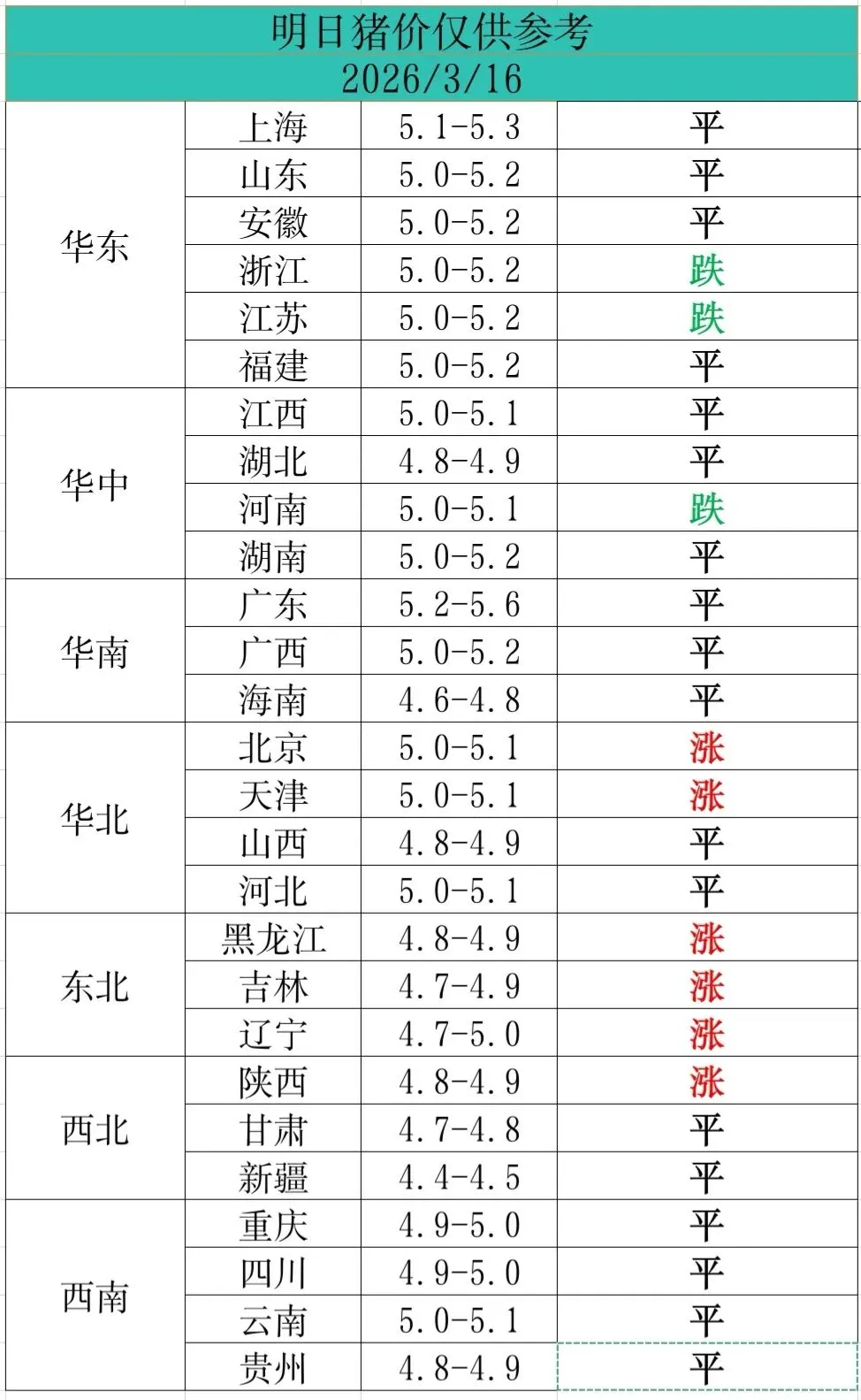 2026年3月16日全国猪价信息/供大家参考 养羊网 2026-03-15 2026年3月16日全国猪价信息/供大家参考 养羊网 2026-03-15 上一篇:明天猪价行情分析参考2026.3.16 下一篇:2026年3月16日大鸿门猪价:稳中震荡 您可能还会对下面的文章感兴趣111: 相关文章 趣玩儿羊圈 养羊四干净,羊儿没毛病. #黑鼎盛果仓 那个帖子 截图澄清#鼎盛果仓 近期价格更新!!!