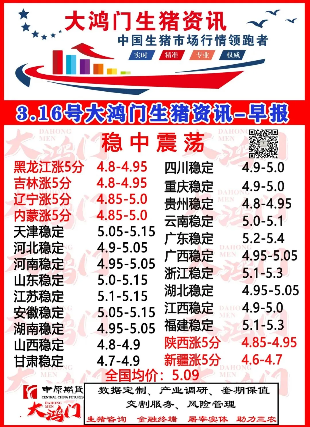 2026年3月16日大鸿门猪价:稳中震荡