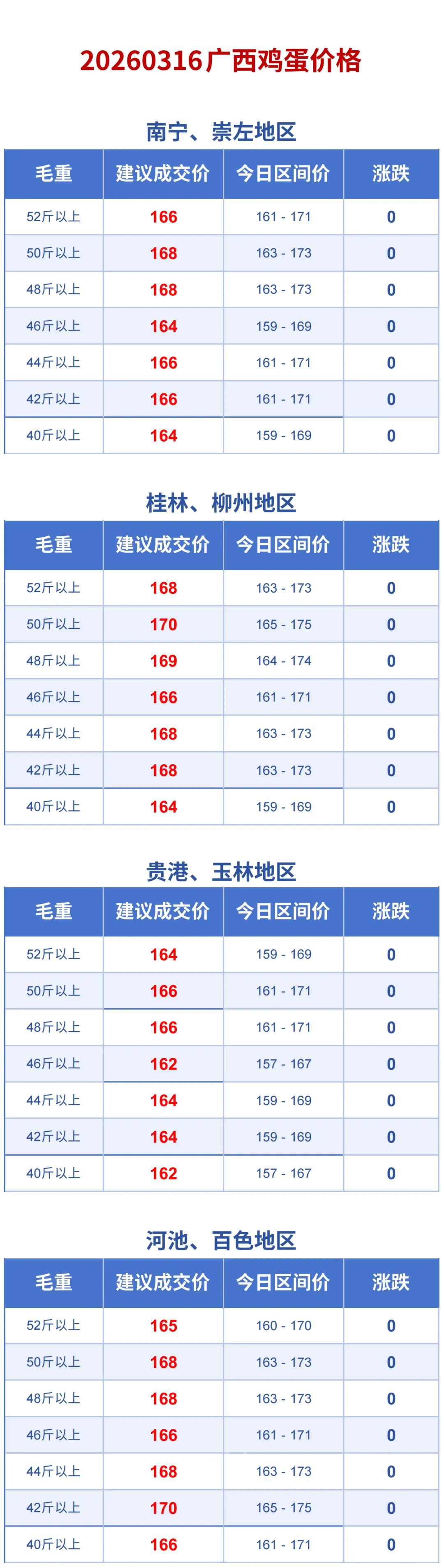 说明:广西鸡蛋价格发布,是为深入落实农业农村部《“百场(厂)千村万户”畜禽生产和效益定点监测信息采集》工作要求的基础上,健全广西蛋禽产业数据监测体系,提供实时精准的鸡蛋价格锚点,推动行业形成透明规范、公允合理的价格体系,助力我区蛋禽产业高质量发展。