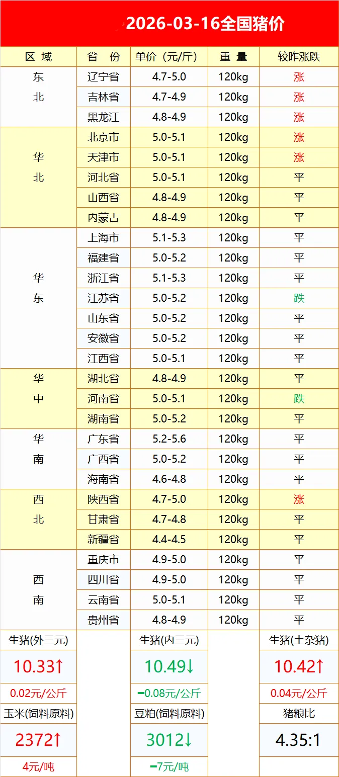 山东慧丰源3月16日猪价行情 养羊网 2026-03-16 山东慧丰源3月16日猪价行情 养羊网 2026-03-16 上一篇:2026年3月16日鸡蛋价格行情参考 下一篇:3月16日昆明鸡蛋价格参考,云南鸡蛋价格参考; 您可能还会对下面的文章感兴趣111: 相关文章 3D max+Corona,微写实羊村 今天还剩这些了 2025年4月13日全国各地生猪价格信息 河北邢台牛聚敏开家电门市热心售后服务生意火