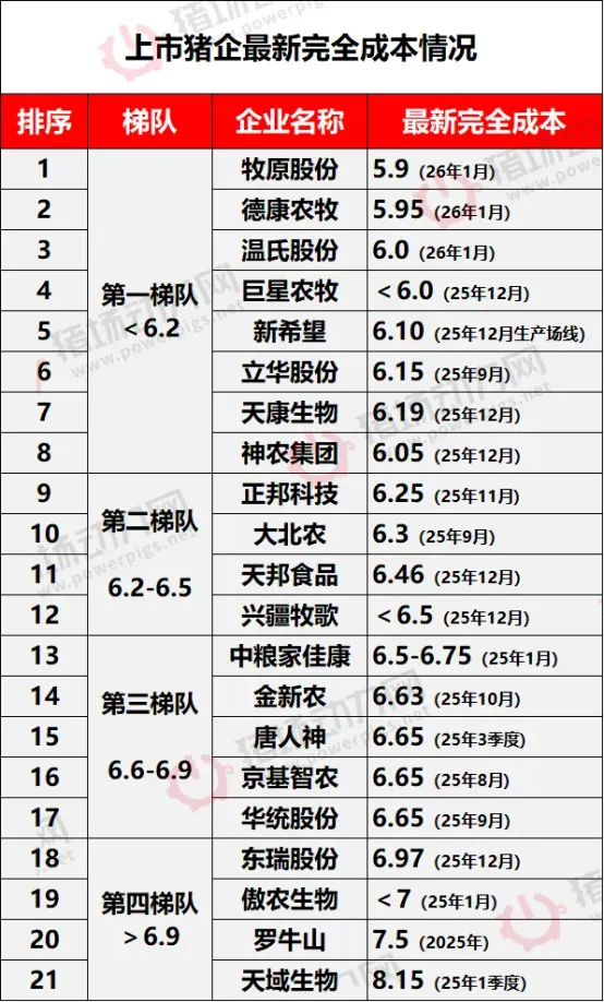 当猪价跌入“4元区”,养殖成本成为养户生死线。据3月11日统计,21家上市猪企中,过半企业养猪成本压至6.5元/斤以下,牧原股份、德康农牧率先进入“5元时代”,21家企业平均成本约6.5元/斤。以当前9.98元/公斤(约4.99元/斤)的出栏价计算,全行业全面亏损,自繁自养头均亏损扩大至238元,中小养户亏损压力更为突出。