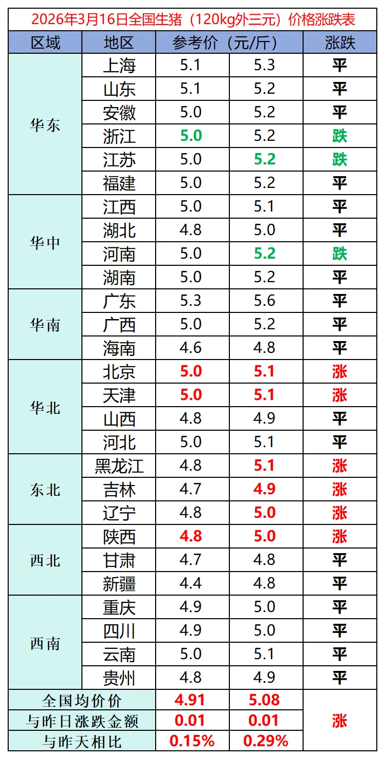 今日猪价 | 2026.3.16 收储托底效应初显?猪价趋稳微涨