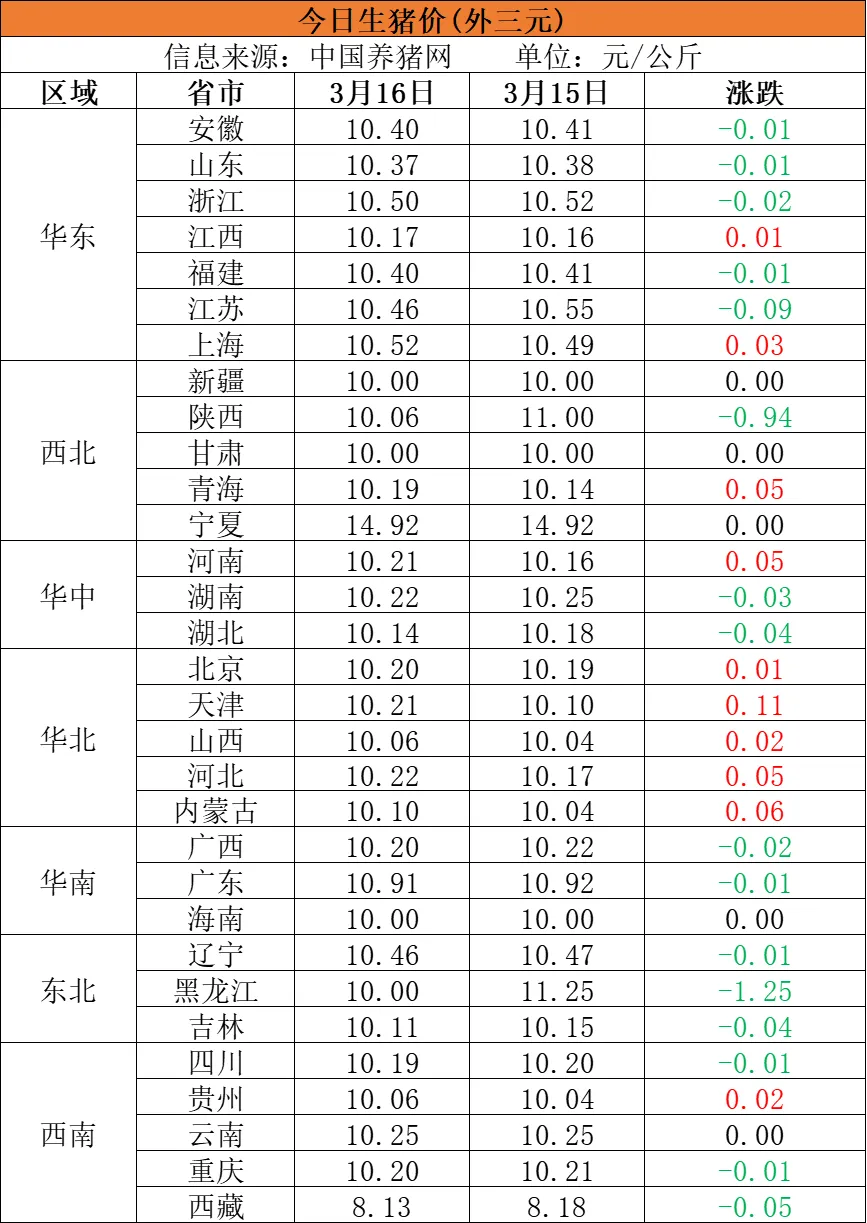 【3月16日猪价】涨跌互现!后市需重点关注生猪购销节奏变化