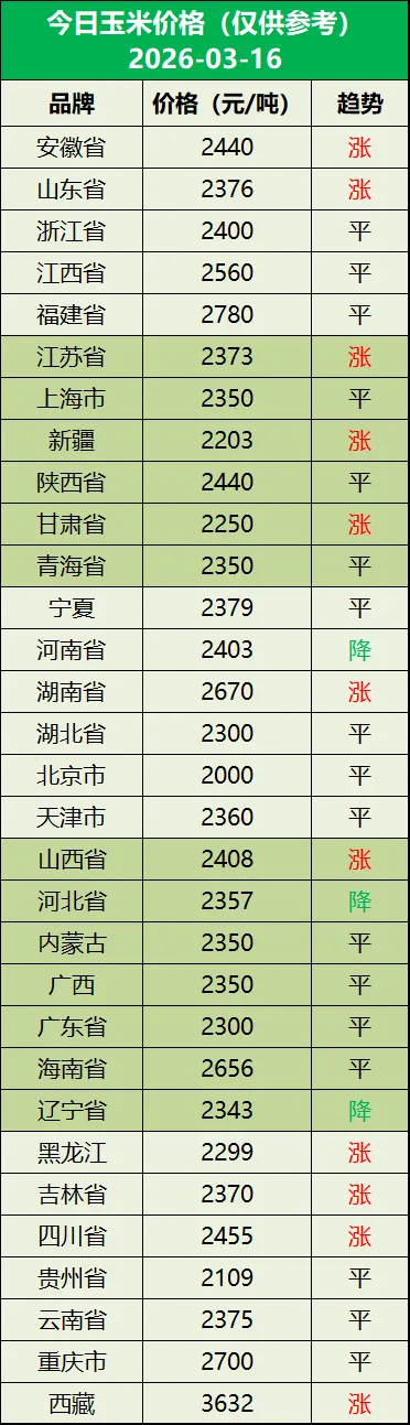 明日猪价(2026年03月17日) 养羊网 2026-03-16 明日猪价(2026年03月17日) 养羊网 2026-03-16 上一篇:【猪价预测】2026年3月18日 ~3月20日!全国猪价! 下一篇:每日猪价|2026.3.17陕西稳 您可能还会对下面的文章感兴趣111: 相关文章 大家说不要买大码鸡蛋因为不人道主义 近期价格更新!!! 【明日猪价】5月23日全国猪价北跌南稳! 近期价格更新!!!