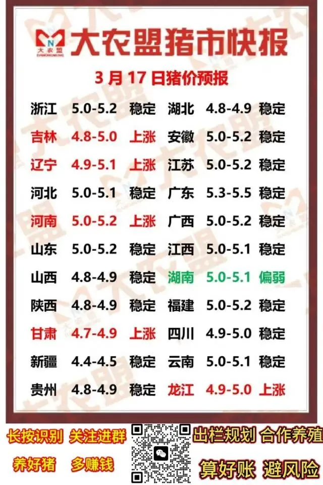 扫码加最新猪价群 一手屠宰报价 行情分析 卖猪建议 养羊网 2026-03-16 扫码加最新猪价群 一手屠宰报价 行情分析 卖猪建议 养羊网 2026-03-16 上一篇:【猪价早报】2026. 3 . 17 全国猪价! 下一篇:猪价二连涨!全国近20省飘红,未来能否大涨? 您可能还会对下面的文章感兴趣111: 相关文章 2026-2-19日猪价(明日猪价) 2025年4月13日全国各地生猪价格信息 【猪价早报】2026.1.23全国猪价多地上涨 荒岛发现四种动物,必须选一个养,咋选?