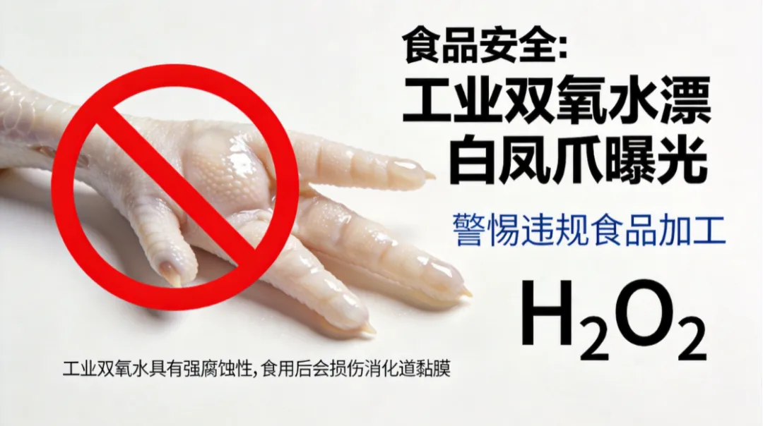 所谓“漂白”,就是用强氧化剂把鸡爪的颜色变得“白净漂亮”,卖相更好。但工业双氧水根本不是食品添加剂,它是用来消毒、漂白工业品的,用在食品上就是赤裸裸的违法。