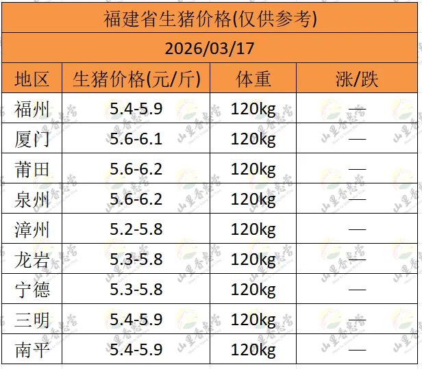 全国各地明日猪价(2026.03.17)-山里香惠营