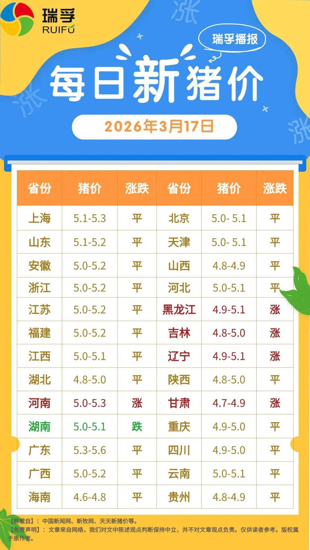 今日猪价 | 3月17日生猪价格 养羊网 2026-03-17 今日猪价 | 3月17日生猪价格编辑|瑞孚集团企划中心 养羊网 2026-03-17 上一篇:2026.3.18明天猪价(附:广东温氏最新生猪报价) 下一篇:2026年3月17日宁城鸡蛋价格早报 您可能还会对下面的文章感兴趣111: 相关文章 近期价格更新!!! 2025年4月13日全国各地生猪价格信息 【明日猪价】2月1日:(猪价一夜升温!多地止跌上涨!全国猪价最新报价) 【贵州省禽业协会报价】:2月6日贵州鸡蛋价格跌!肉鸡价格稳!