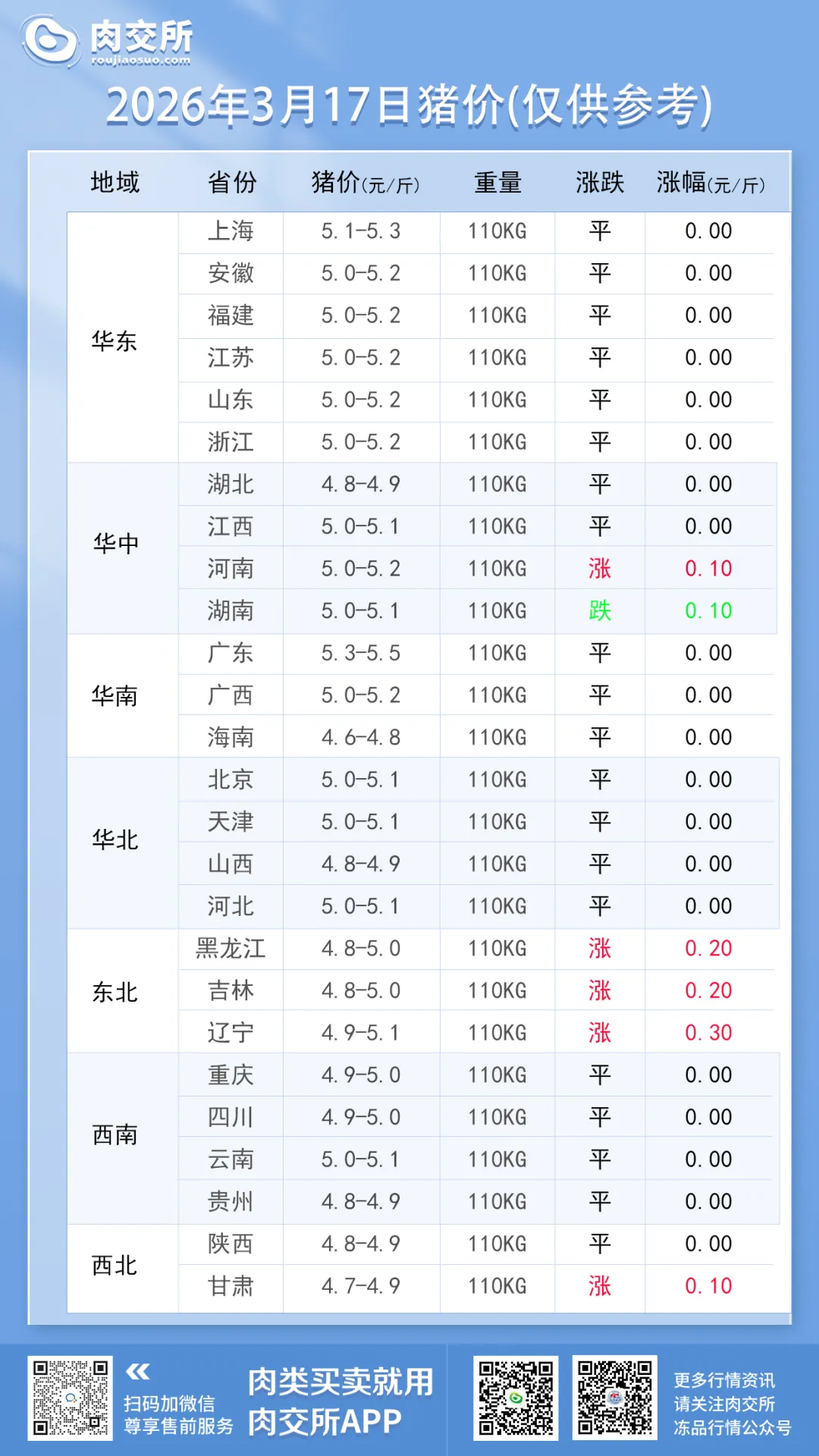 仅湖南跌 0.1 元 / 斤(属反弹后正常回调); - 全面维稳