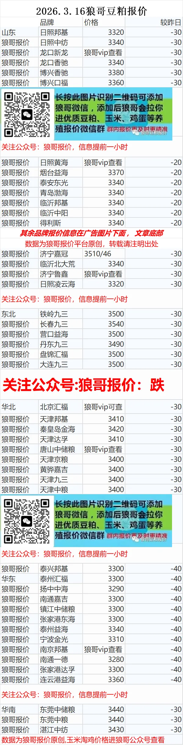 狼哥明日(3.18)鸡蛋价格预测,文末有豆粕下午报价
